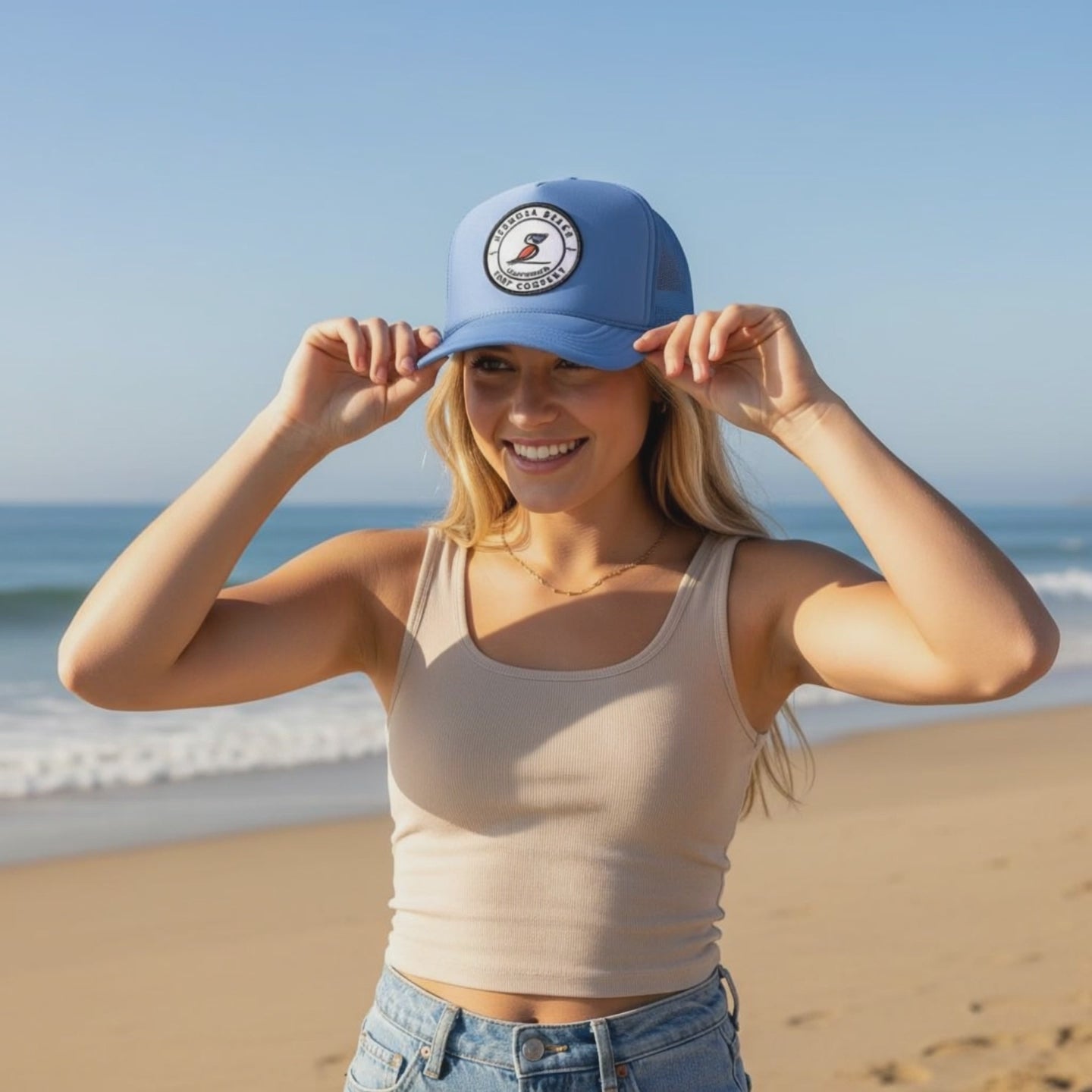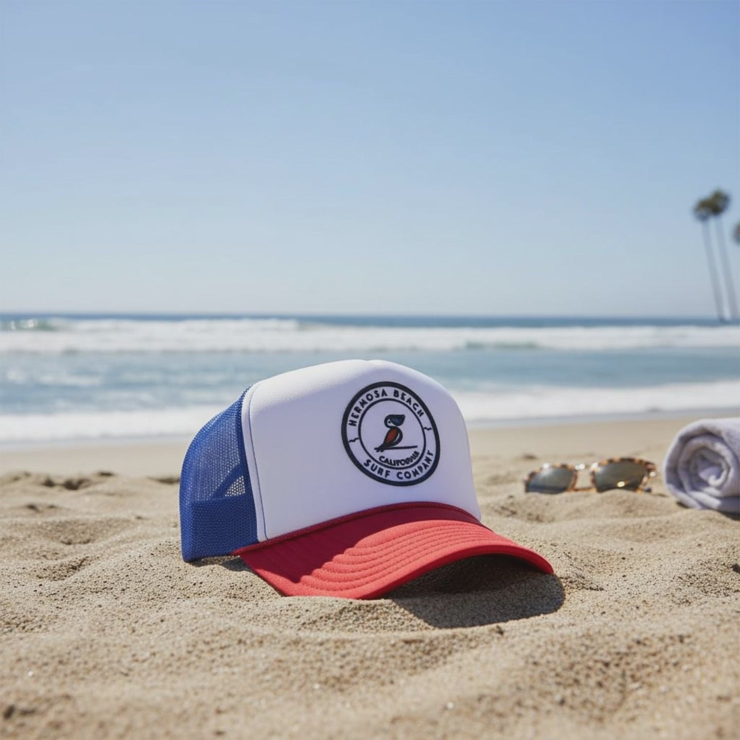 Add a splash of California cool to your look with the Hermosa Beach Trucker Hat. This 5-panel cap features a vibrant Hermosa Beach patch and comes in a variety of fun colors to match your mood. Lightweight and breathable, it’s perfect for sunny days at the beach or casual hangouts around town. Rock the waves in style while keeping the sun out of your eyes!